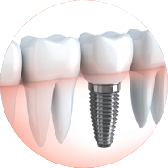 Es un dispositivo metálico (titanio), habitualmente con forma de tornillo, que se inserta en el hueso maxilar, superior e inferior, para reemplazar piezas dentarias perdidas.